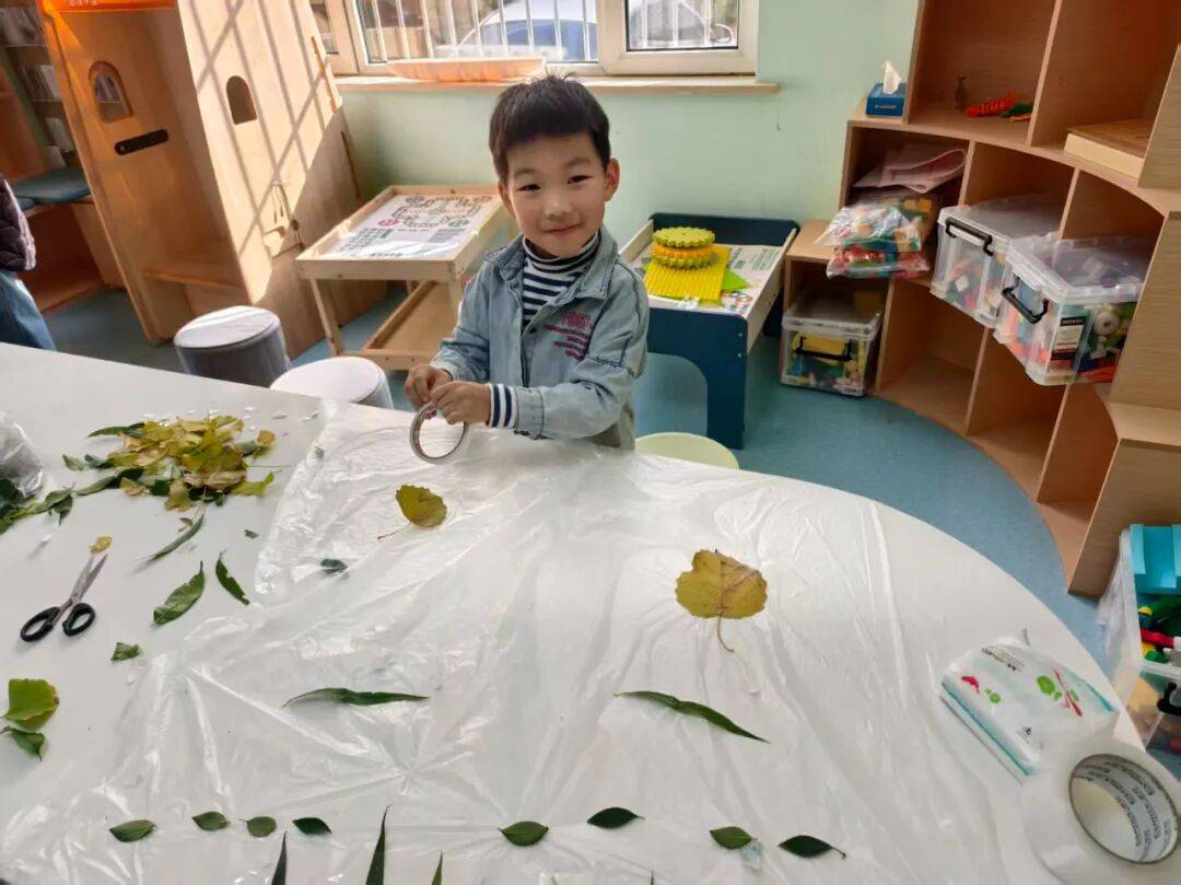 故事分享结束后,手工实践环节热闹开启。老师带领小朋友们变身“小小设计师”,围绕“披风”主题展开创作。大家充分发挥想象力,将收集来的秋日落叶精心拼贴,再搭配一次性桌布进行裁剪、装饰,原本普通的材料在孩子们的巧手下,渐渐变成了一件件独一无二的“重阳披风”。孩子们举着自己的作品互相展示,课堂内满是欢声笑语。